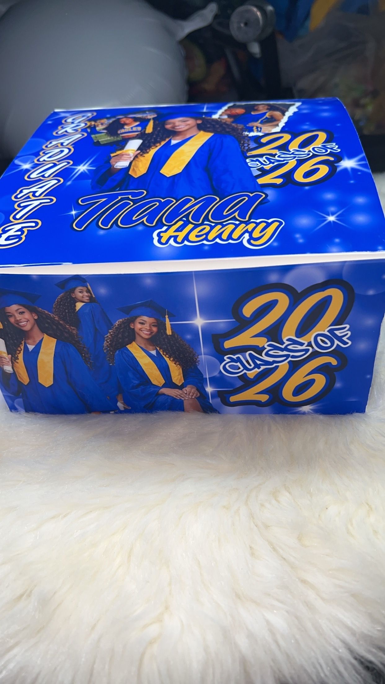 Each box is customized to match your theme, colors, and vision—featuring names, photos, logos, or special messages designed with vibrant, eye-catching detail. Whether you're packaging treats, gifts, or full event bundles, our custom boxes bring a polished, luxury feel to every occasion.